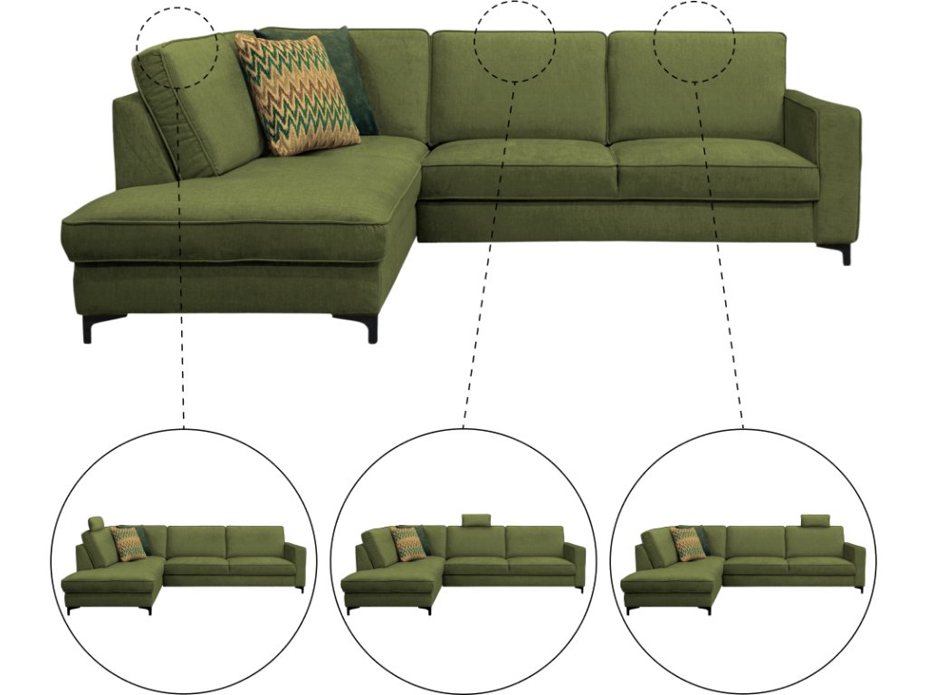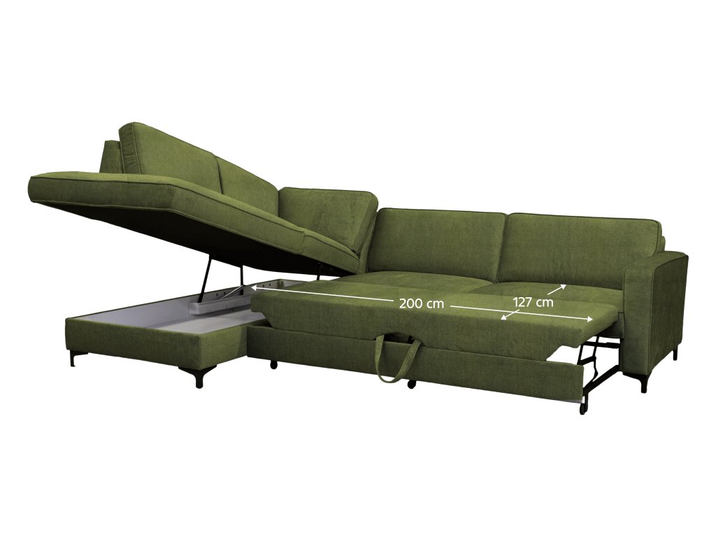 Rozkládací sedací souprava, olivová, levá, ERMON ROH