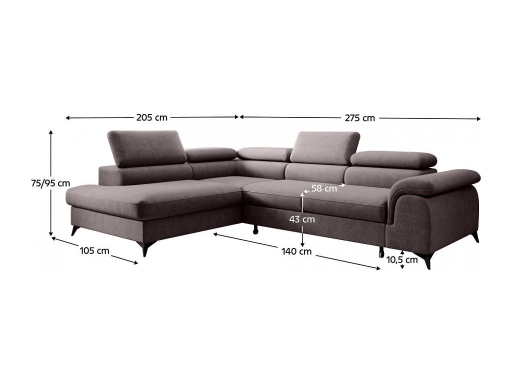 Rozměry (ŠxHxV): 275x205x75/95 cm