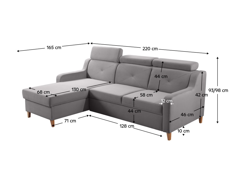 Rozměry (ŠxHxV): 220x165x93/98 cm