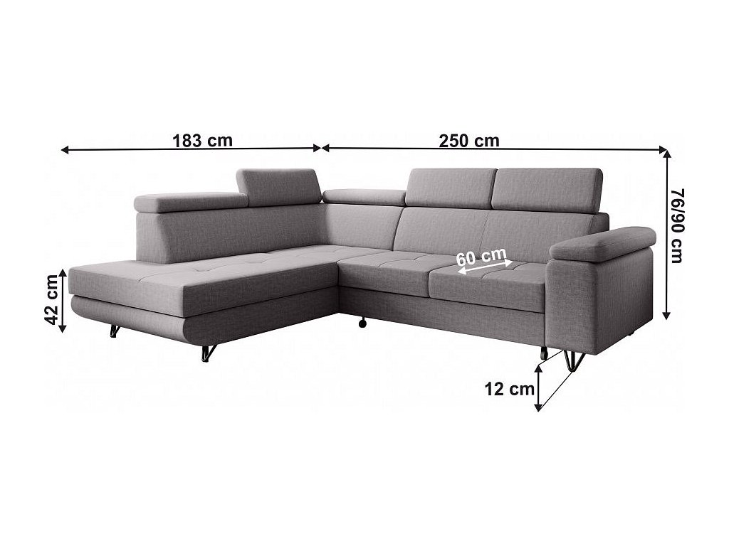 Rozměry (ŠxHxV): 250x183x76/90 cm