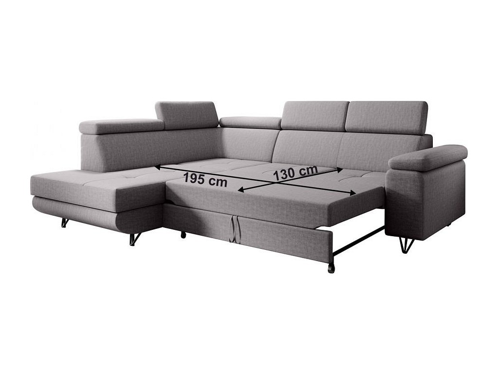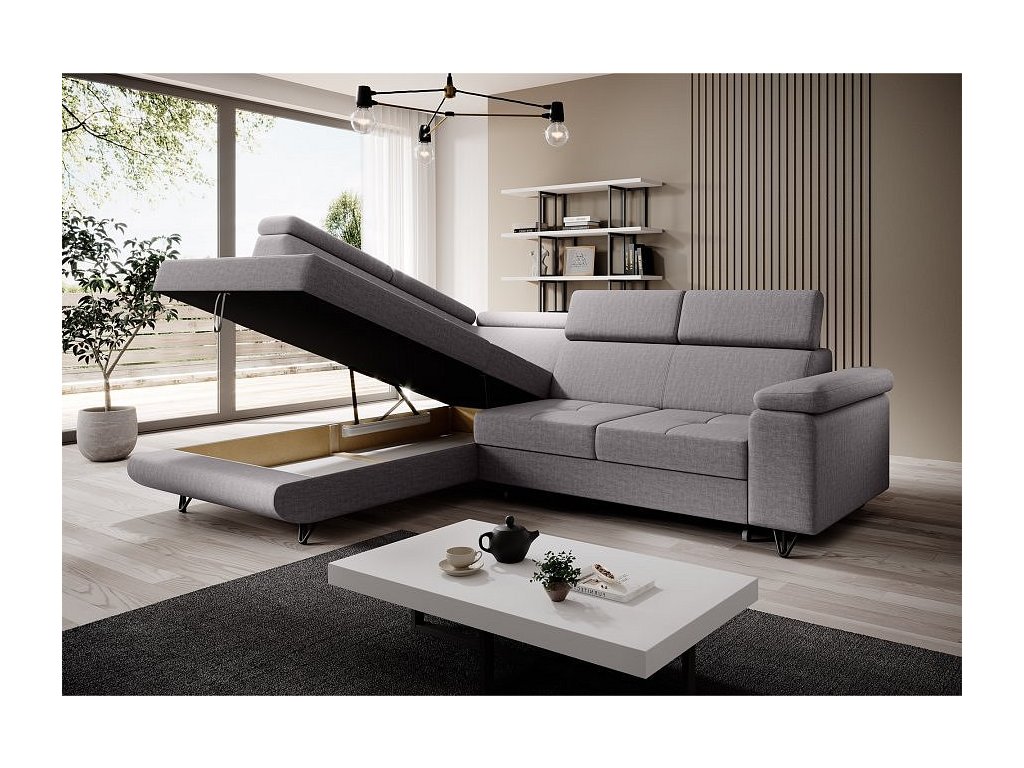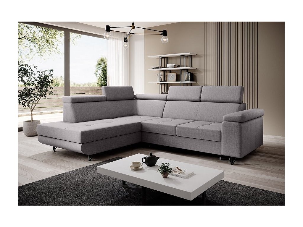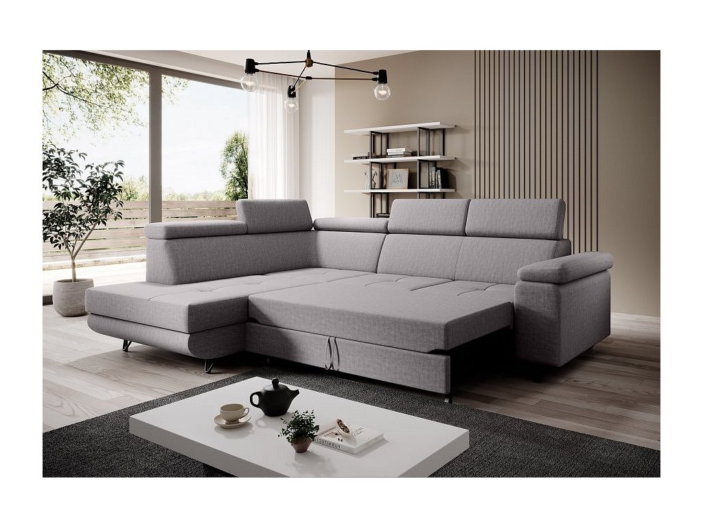 Rozkládací sedací souprava, světle šedá, levá, JOGI ROH