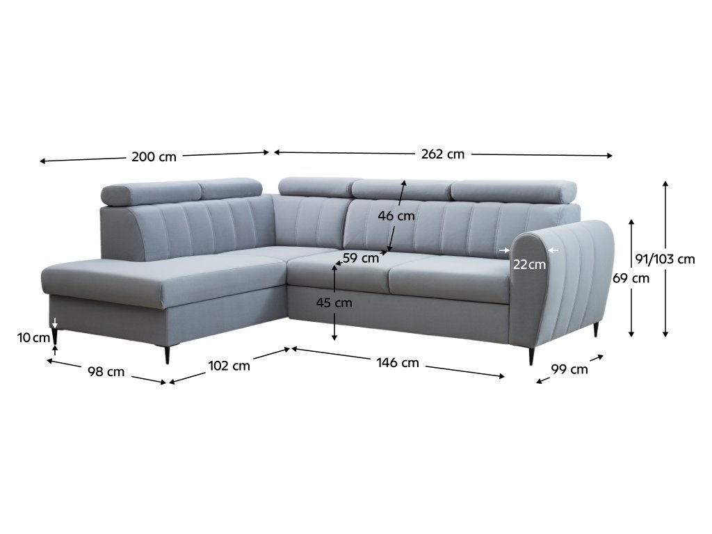 Rozměry (ŠxHxV): 262x200x91/103 cm