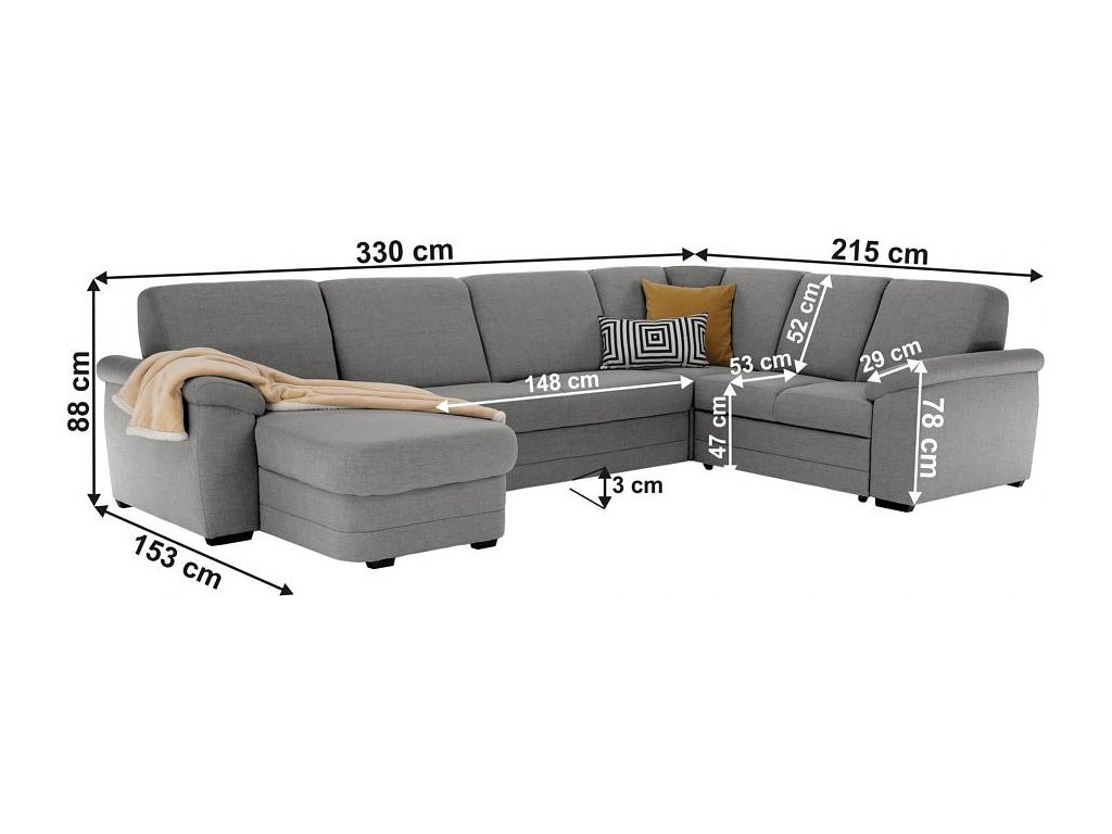 Rozkládací sedací souprava do U BITER levá, látka šedá