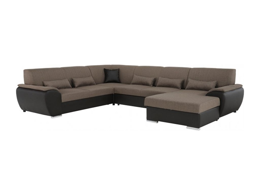 Rozkládací sedací souprava do U EMILY pravá, látka hnědá/ekokůže hnědá