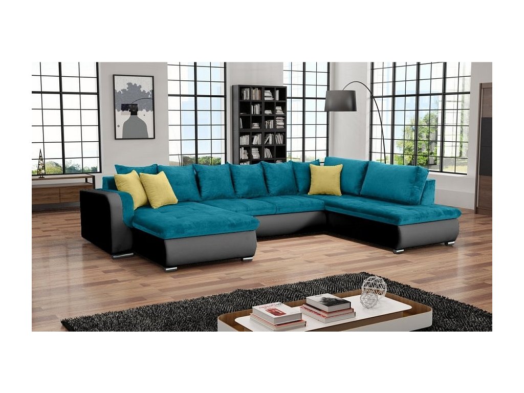CASA 41005 Praktická prostorná celočalouněná rohová sedačka do tvaru U. Netradiční a velmi moderní vzhled. Sedačka obsahuje prostor na příležitostní spaní. Po rozložení je spací plocha 285 x 135 cm. Rozklad je snadný, vysune se vozík s matrací do přední části. Pohodlné sezení zaručují vlnovcové pružiny spolu s PUR pěnou ( T30 ). Výška sedu je 41 cm, hloubka sedu 48 cm ( bez polštářů 63 cm ), výška sedačky bez polštářů 65 cm. Nožky jsou kovové pochromované. Barevné provedení - korpus ekokůže Madryt 1100, sedací a opěrná část látka Orinoco 85 a dekorační polštářky Orinoco 40.