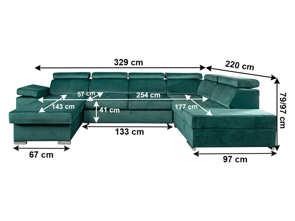 Sedací souprava LAMORA do U v levém provedení je vyrobena v kvalitní potahové látce KRONOS 19 smaragdová. Disponuje až šesti polohovacími opěrkami hlavy, které se dají přizpůsobit v pěti stupních. Polohovací opěrka na ruce vyzvedne její pozitiva na maximum. Sedací soupravu lze snadno a rychle rozložit pro občasné přespávání návštěvy, nebo odpočinek po práci. Praktický úložný prostor jistě oceníte při uložení lůžkovin či sezónních věcí. Výplň sezení pružiny faliste a pur pěna T30KG / m3, tloušťka pěny 10 cm. výplň opěrky elastické pásy a pur pěna T25 / m3, tloušťka pěny 7 cm. Dodáváme v demontu.