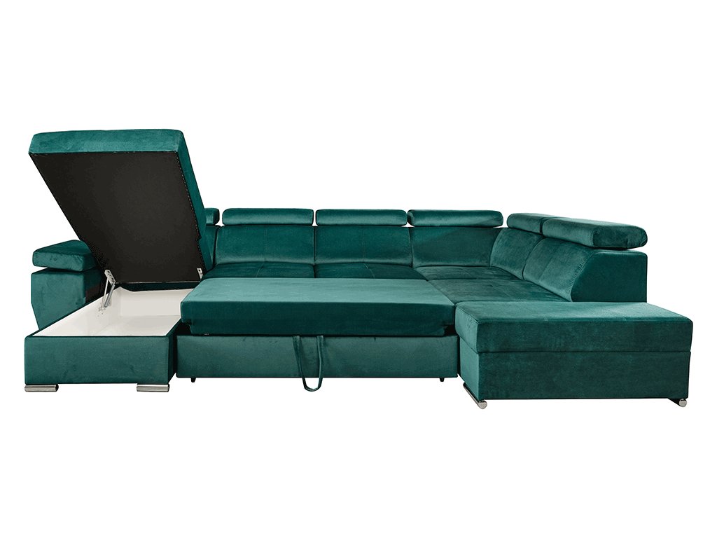 Rozkládací sedací souprava do U LAMORA s úložným prostorem, levá, smaragdová