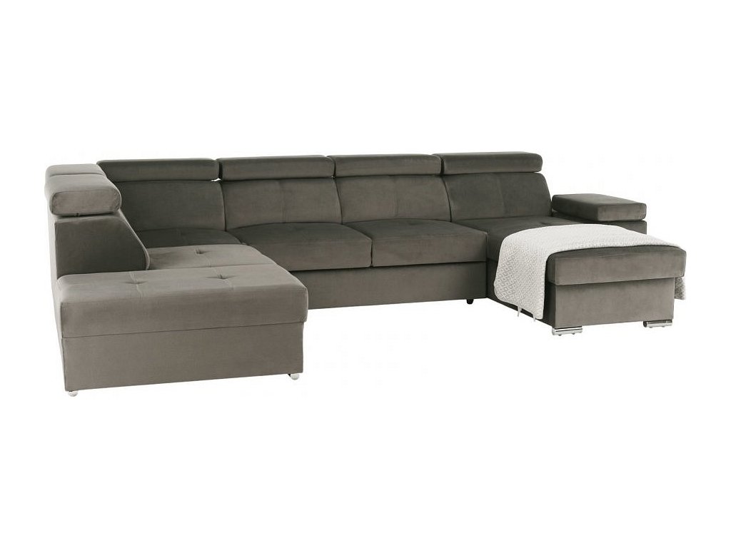 Rozkládací sedací souprava do U LAMORA s úložným prostorem, pravá, šedohnědá taupe