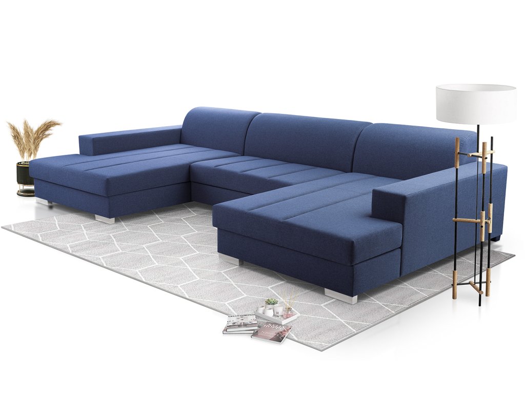 Rozkládací sedací souprava do U Miriam s úložným prostorem, modrá