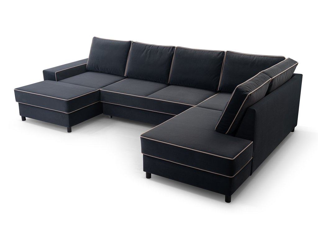Rozkládací sedací souprava do U OLGA s úložným prostorem, levá, Matt Velvet 97, 09 černá