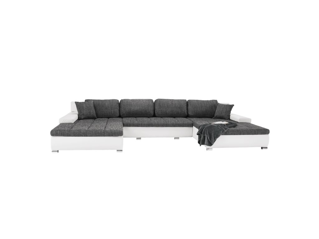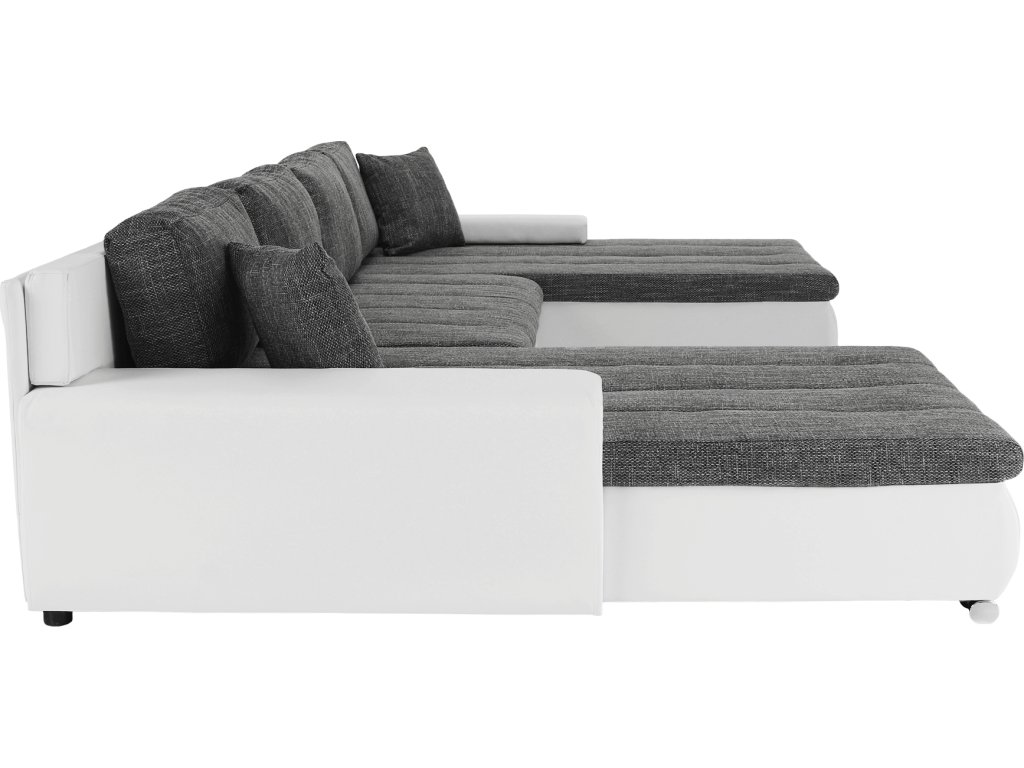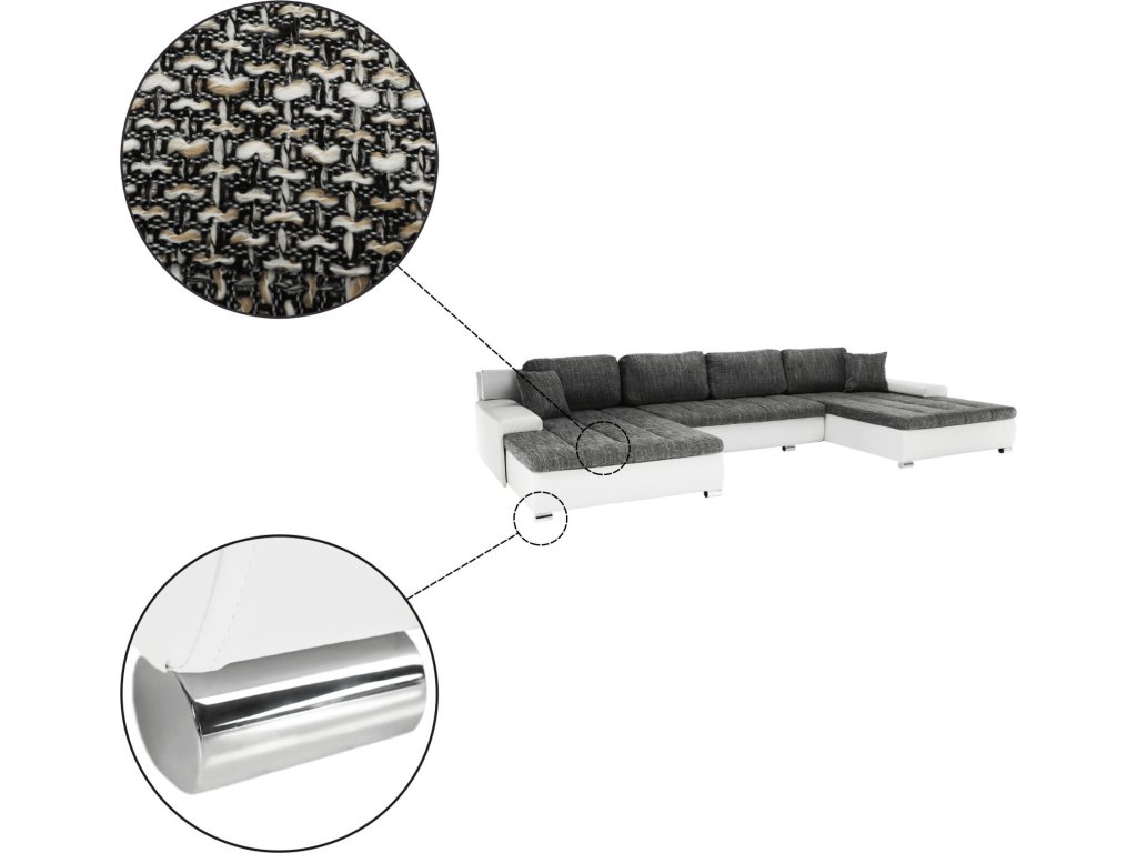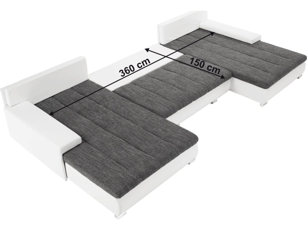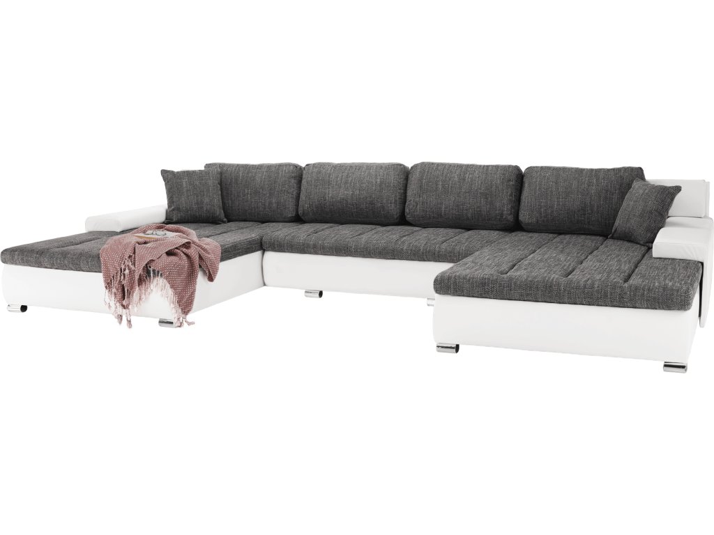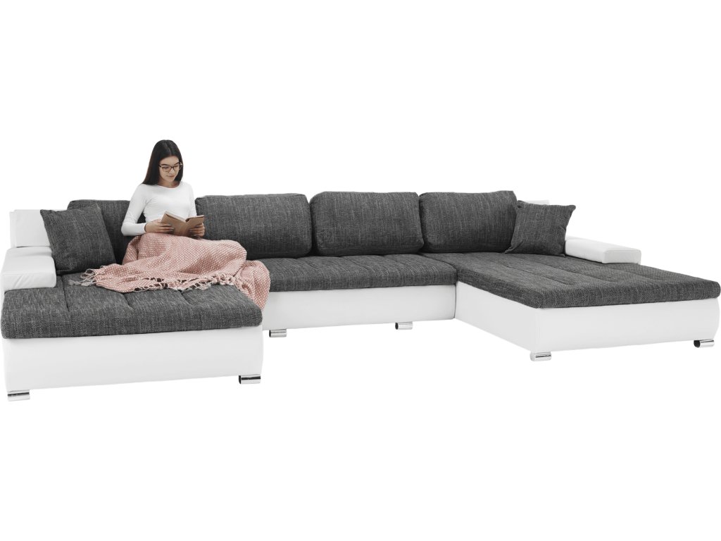 Rozkládací sedací souprava do U TONIKS UNI s úložným prostorem, ekokůže bílá/látka šedý melír
