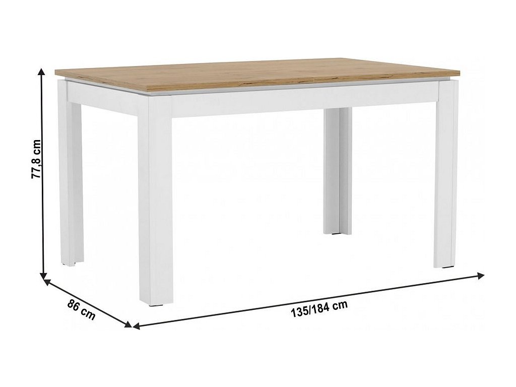 Rozkládací stůl, bílá/dub wotan 135-184x86 cm, VILGO