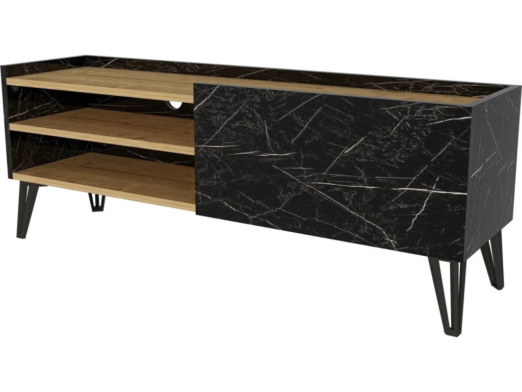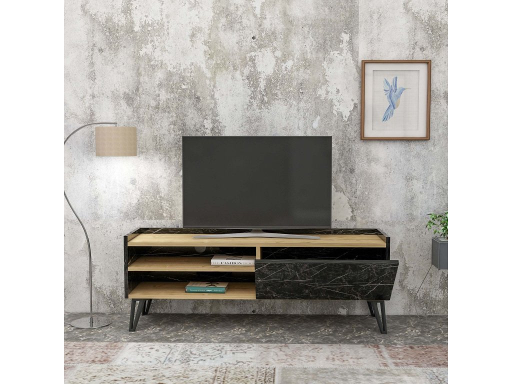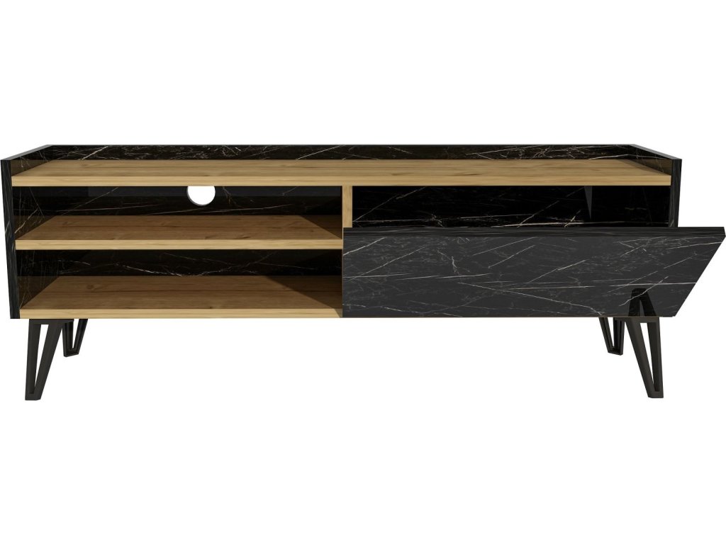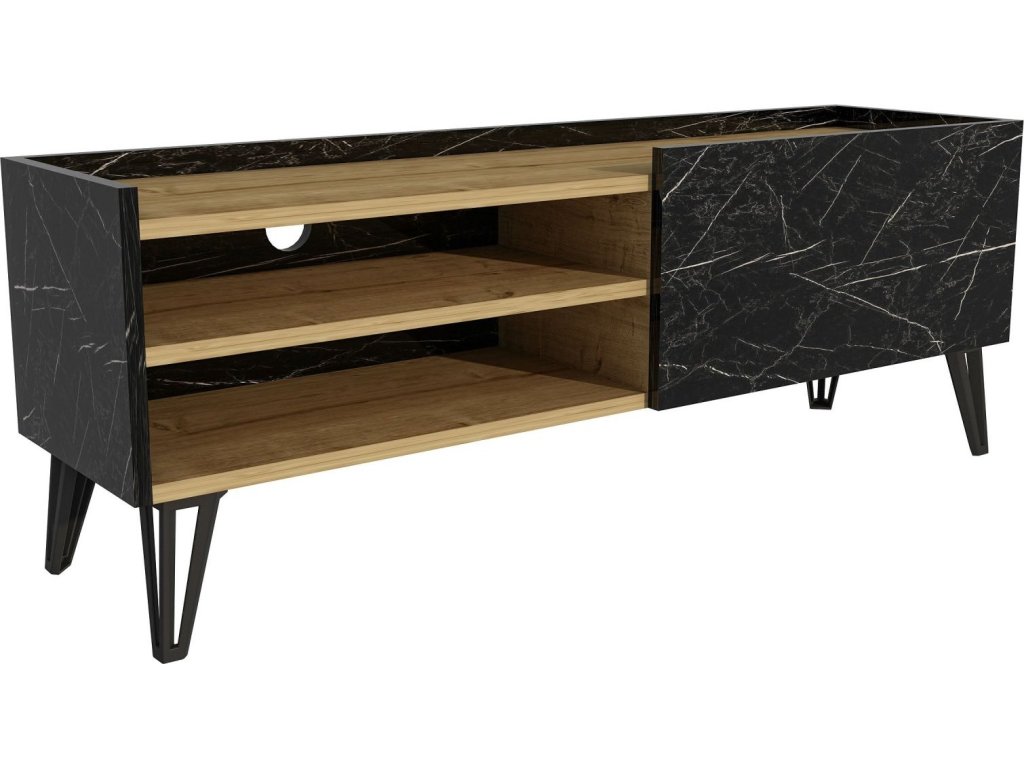 TV stolek je ideálním doplňkem pro moderní interiéry, kde se klade důraz na eleganci a funkčnost. Tento stylový nábytek kombinuje plná dvířka a regálek, což zajišťuje dostatek úložného prostoru pro vaše elektronické zařízení, příslušenství nebo dekorace. Díky svému luxusnímu designu snadno zapadne do jakéhokoli obývacího pokoje.