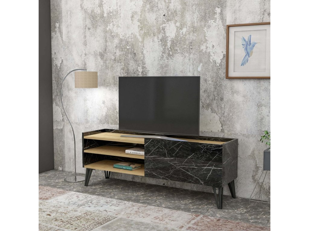 Stolek spojuje elegantní vzhled s praktičností, díky čemuž je skvělou volbou pro organizaci a estetické vylepšení vašeho obývacího pokoje. Kvalitní materiály a precizní zpracování zajišťují dlouhou životnost a jednoduchou údržbu. Pořiďte si TV stolek a dodejte svému interiéru styl a funkčnost!