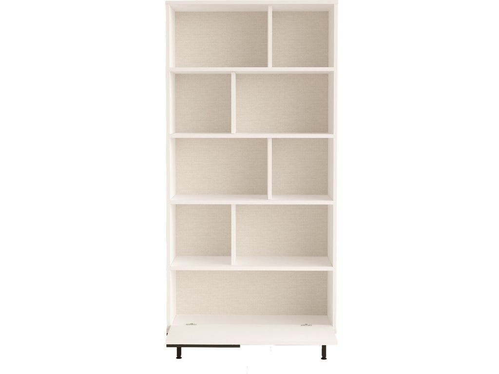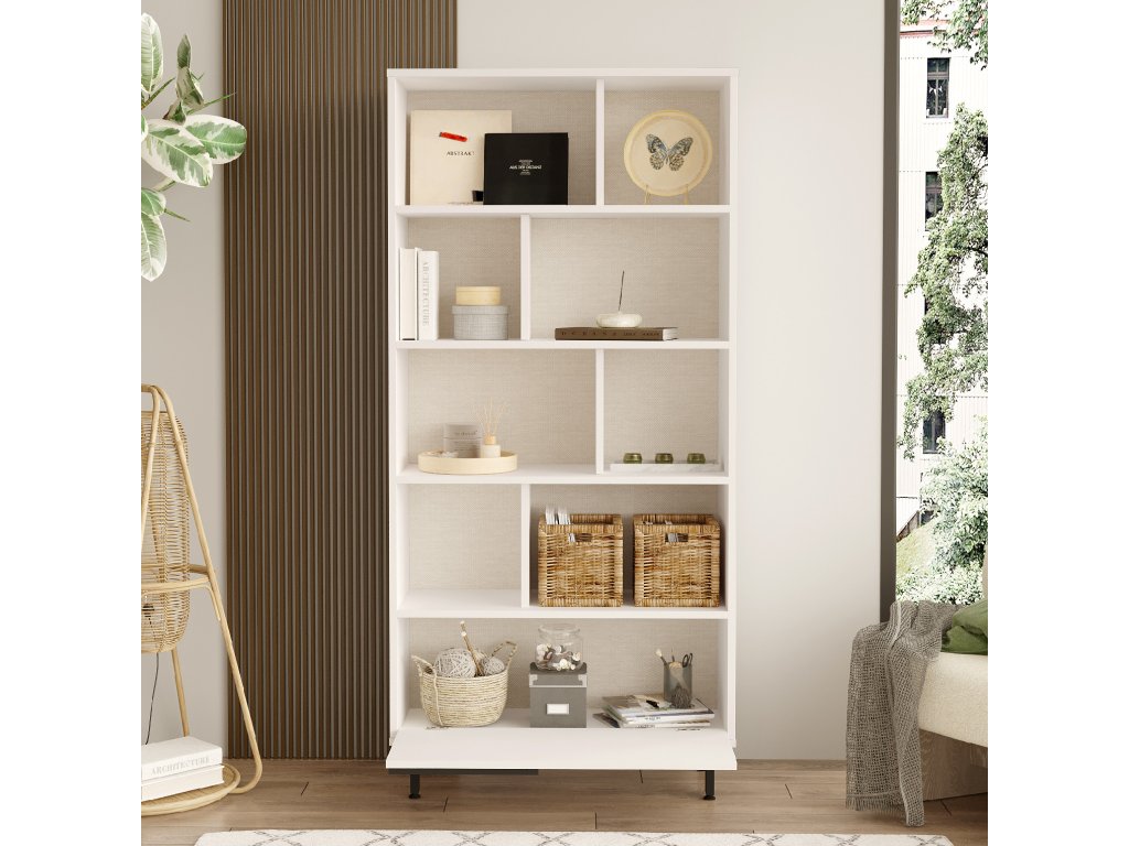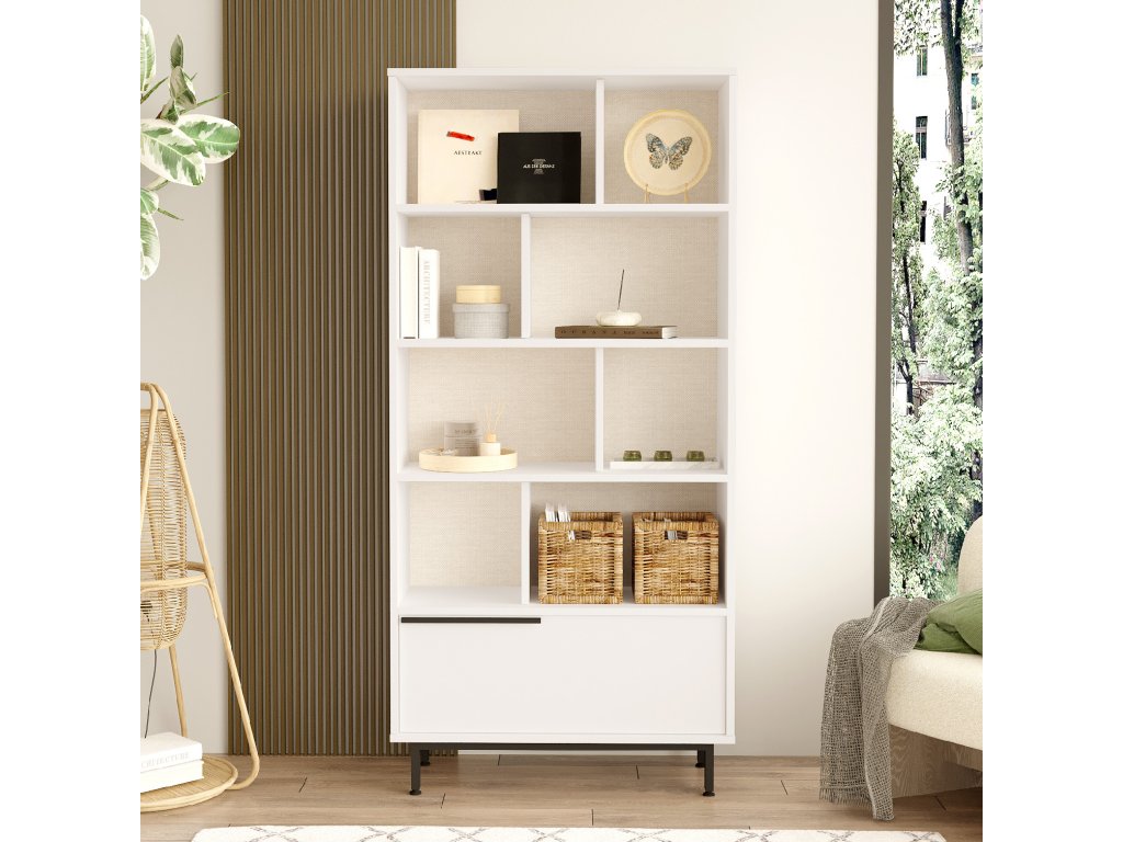 kombinuje praktičnost a moderní styl. Čtyři otevřené police jsou ideální pro vystavení knih nebo dekorací, zatímco plné dvířko poskytuje uzavřený prostor pro uschování dalších předmětů. Díky svému elegantnímu designu a funkčnímu uspořádání se tato knihovna hodí do jakéhokoli obývacího pokoje.