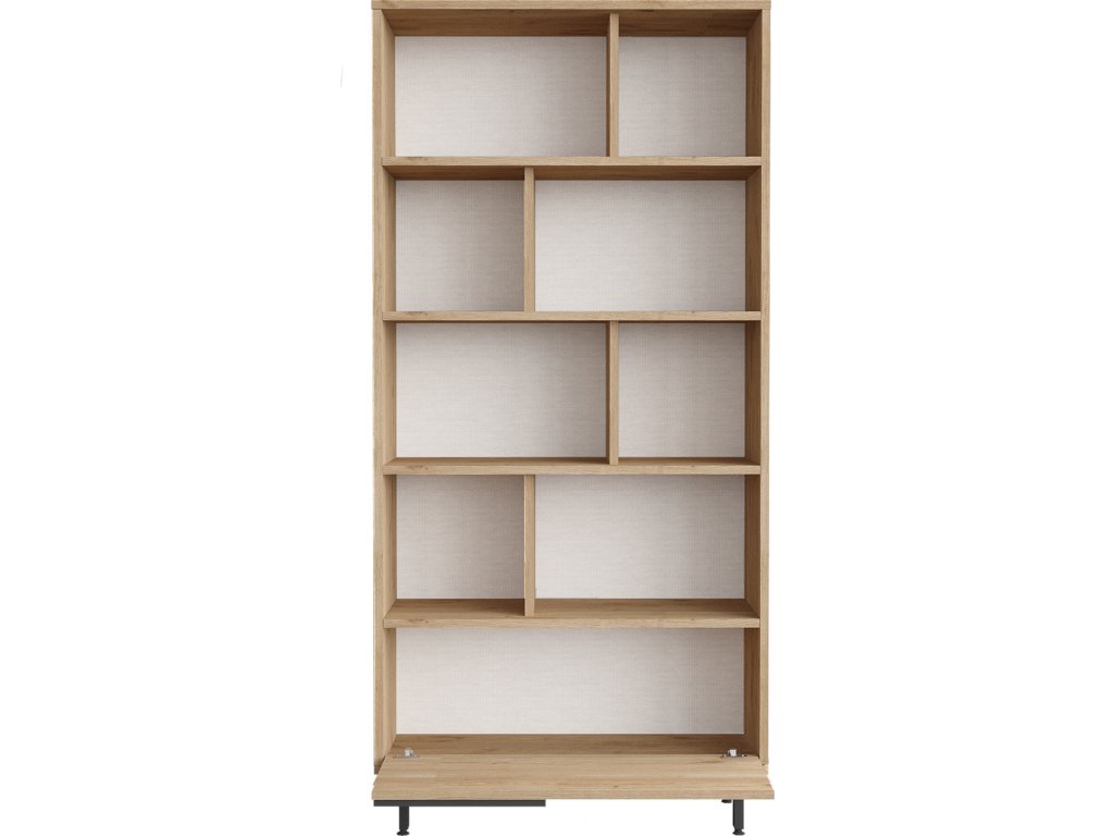 kombinuje praktičnost a moderní styl. Čtyři otevřené police jsou ideální pro vystavení knih nebo dekorací, zatímco plné dvířko poskytuje uzavřený prostor pro uschování dalších předmětů. Díky svému elegantnímu designu a funkčnímu uspořádání se tato knihovna hodí do jakéhokoli obývacího pokoje.