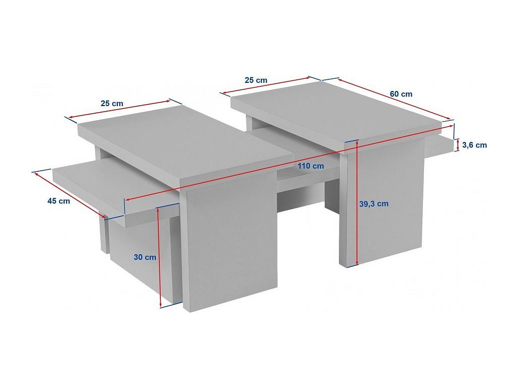 - Rozměry velkého stolu: Šířka: 110 cm, Výška: 30 cm, Hloubka: 45 cm