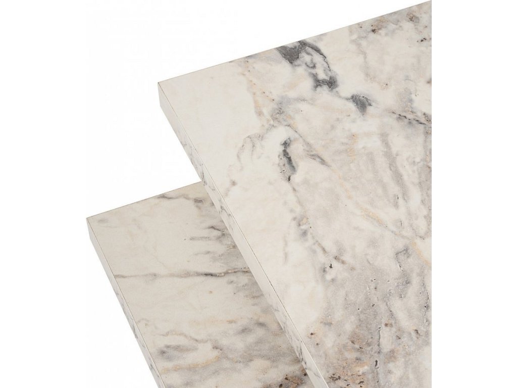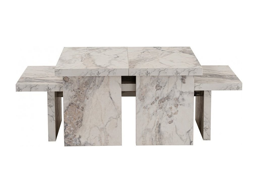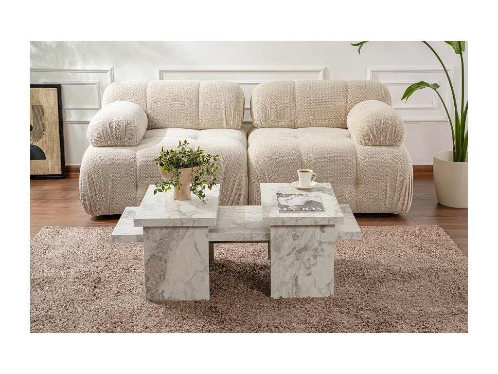 Sada konferenčních stolků z mramoru Freesia je vyrobena ze 100% dřevotřísky s melaminovým povlakem, což zaručuje odolnost a dlouhou životnost. Tloušťka 18 mm zvyšuje robustnost stolků, díky čemuž jsou ideální pro každodenní použití.
