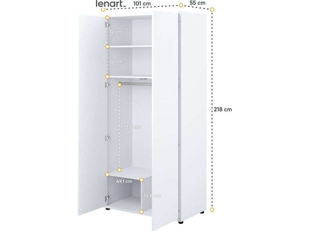 CASA 73026 Šatní skříň se dvěma dvířky bílá lesk/bílá mat. Rozměry a vnitřní prostor viz obrázky. Nábytek je vyroben z kvalitního lamina s ABS hranou. Lamino je odolné proti poškrábání, poškození, vlhkosti a vysokým teplotám. Dodáváme v demontovaném stavu.