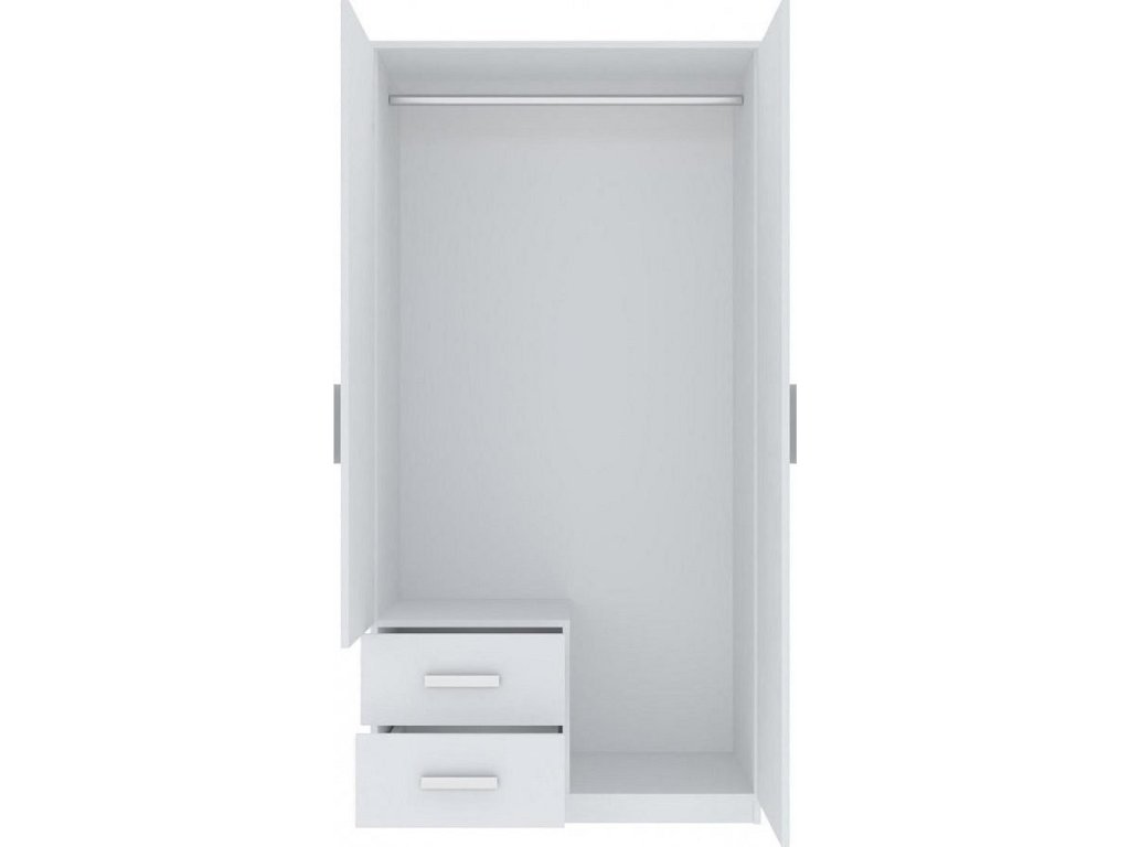 CASA 85036 Šatní skříň dvoudveřová se dvěma zásuvkami, je vyrobena z kvalitní LTD desky v barevném provedení bílá. Uvnitř skříně je šatní tyč, dveře jsou doplněny zrcadlem. V naší nabídce naleznete více variant nábytku této řady. Dodáváme v demontovaném stavu.