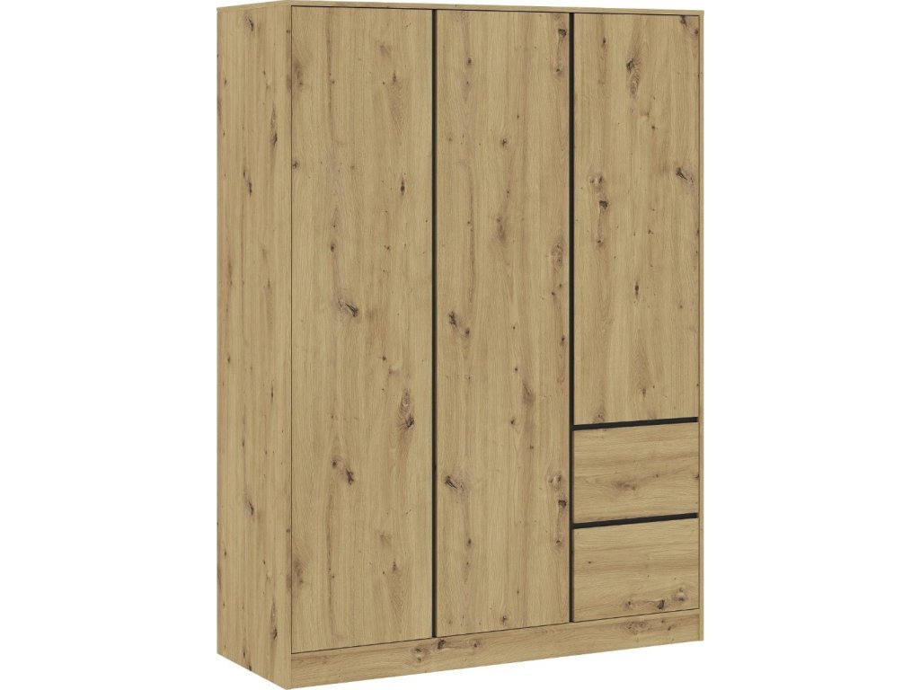 CASA 85019 Třídveřová šatní skříň se dvěma zásuvkami je vyrobena z kvalitní LTD v barevném provedení dub artisan/antracit. Dodáváme v demontovaném stavu.