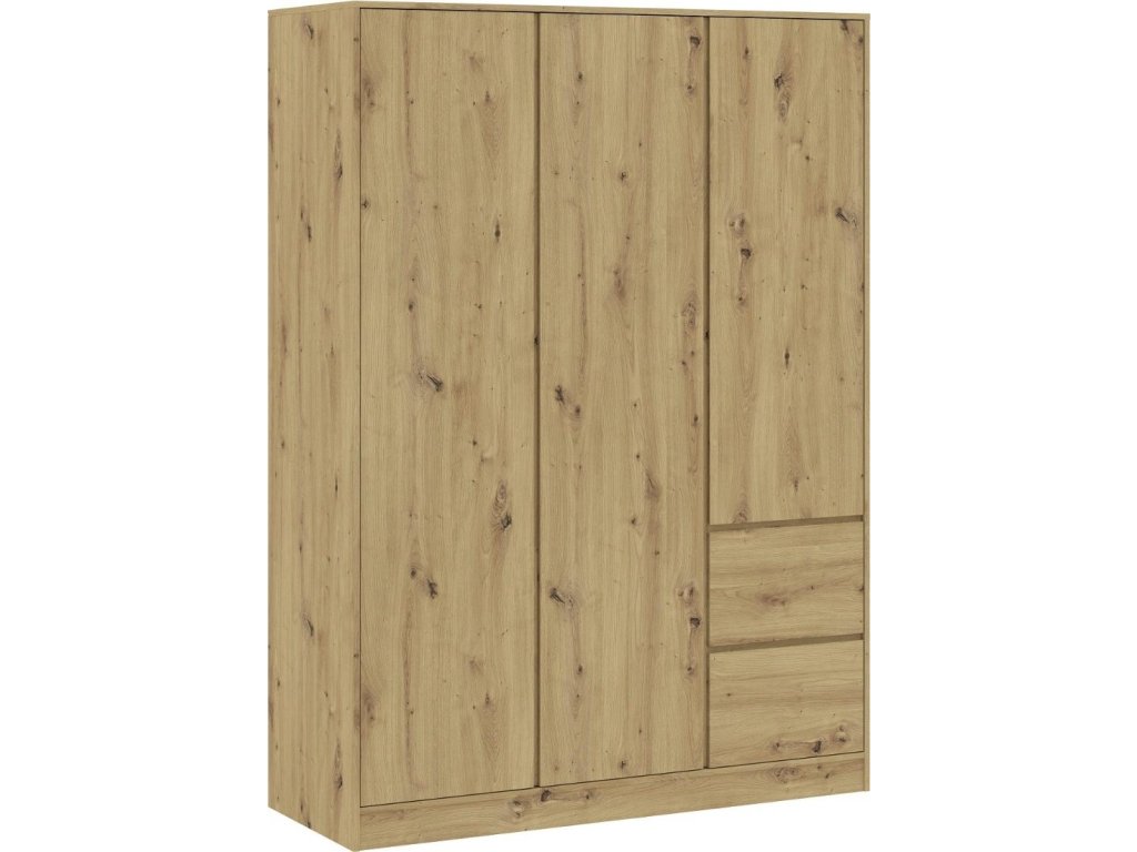 CASA 85019 Třídveřová šatní skříň se dvěma zásuvkami je vyrobena z kvalitní LTD v barevném provedení dub artisan. Dodáváme v demontovaném stavu.