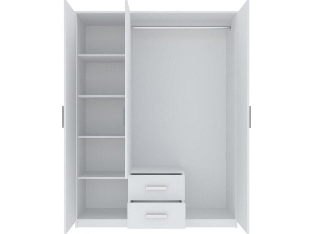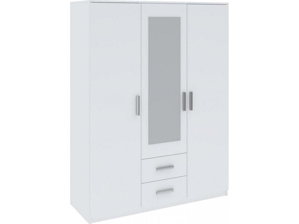 CASA 85036 Šatní skříň třídveřová se dvěma zásuvkami, je vyrobena z kvalitní LTD desky v barevném provedení bílá. Uvnitř skříně je šatní tyč a policový systém, dveře jsou doplněny zrcadlem. V naší nabídce naleznete více variant nábytku této řady. Dodáváme v demontovaném stavu.