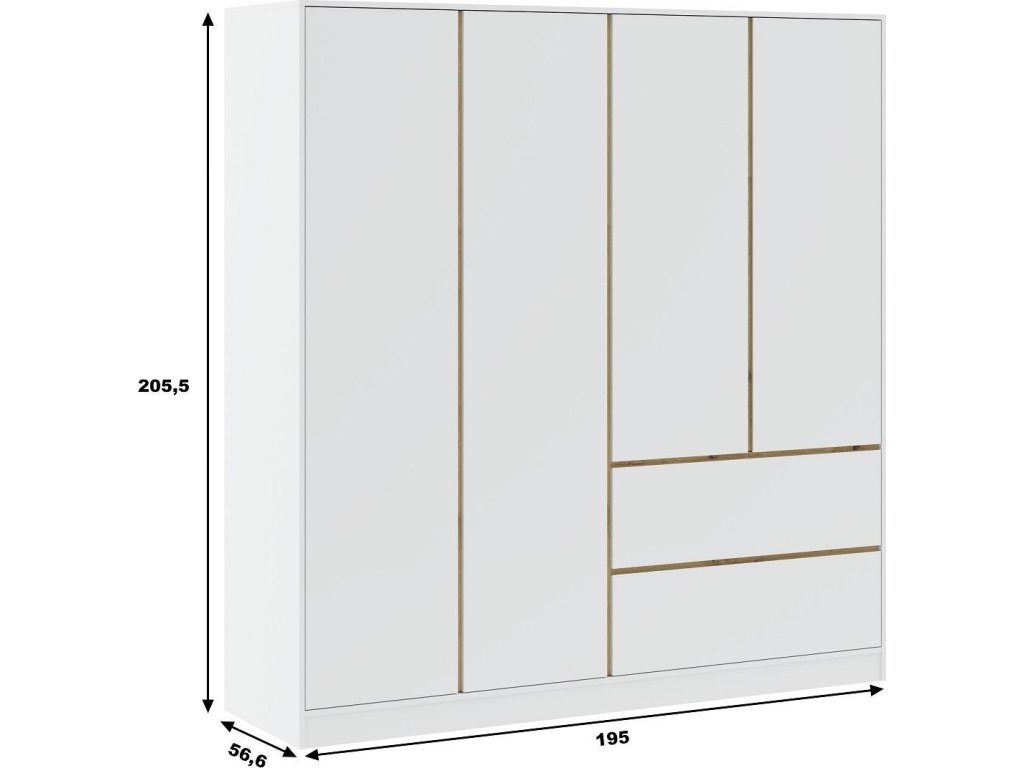 CASA 85019 Čtyřdveřová šatní skříň se dvěma zásuvkami je vyrobena z kvalitní LTD v barevném provedení bílá/dub artisan. Dodáváme v demontovaném stavu.
