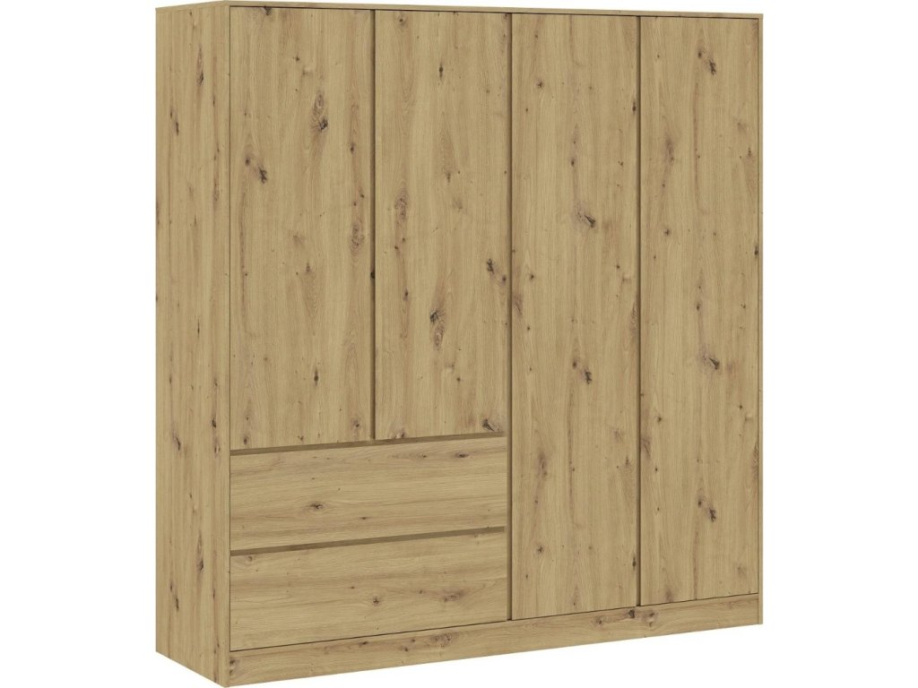 CASA 85019 Čtyřdveřová šatní skříň se dvěma zásuvkami je vyrobena z kvalitní LTD v barevném provedení dub artisan. Dodáváme v demontovaném stavu.