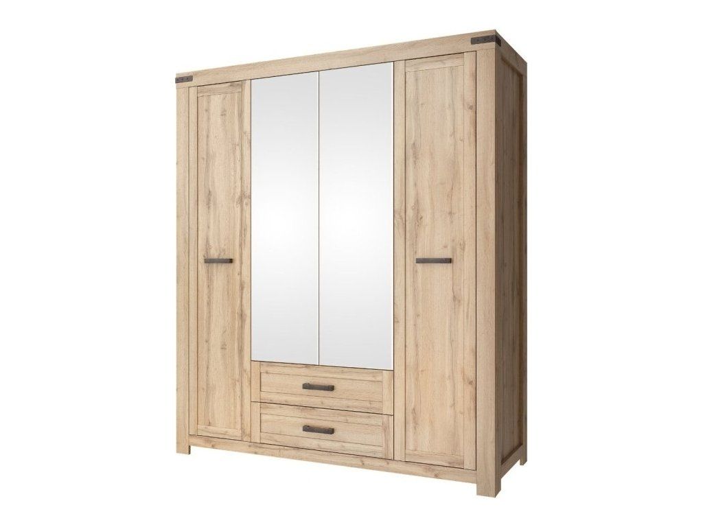 Šatní skříň čtyřdveřová se dvěmi zásuvkami.