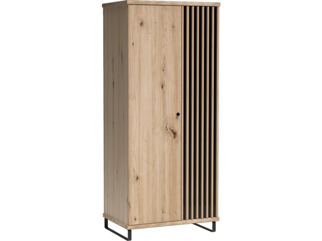 Moderní dvoudveřová šatní skříň ze sektorové kolekce BARBUS. Celá řada v sobě spojuje jednoduchost, originální vzhled a funkčnost s netradičním provedením detailu dvířek a lamelami. Nábytek je vyroben z kvalitního lamina v dekoru dub artisan v kombinaci s černou. Hrany jsou ohraničeny ABS páskou, dekorační lamely jsou vyrobeny z desky MDF. Uvnitř skříně je v levé části police a šatní tyč, v pravé části jsou police. Skříň je možné doplnit dalšími produkty z řady BARBUS ve stejném designu. Dodáváme v demontovaném stavu. CASA 71023