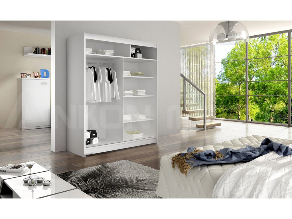 Skříň je vyrobena z kvalitního lamina. Díky svému vnitřnímu uspořádání nabízí dostatek úložného prostoru a posuvné dveře prostor šetří. Skříň je vhodná do ložnice, dětského nebo studentského pokoje, do předsíně i kanceláře. Vnitřní uspořádání skříně je vyobrazeno na fotografii. Skříň je dodávána v demontu a součástí je montážní plánek včetně všech potřebných spojovacích materiálů. Vyobrazené dekorace nejsou v ceně.