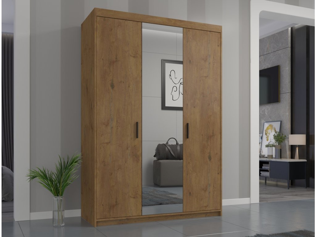 CASA 87002 Šatní skříň ve stylovém, ale velmi praktickém provedení. Nábytek je vyrobený z lamina v barvě dub lefkas se zrcadlem. Lamino je odolné proti poškrábání, poškození, vlhkosti a vysokým teplotám. Vnitřní prostor vyobrazen na perokresbě. Možnost dokoupení nádstavce nad skříň. Dodáváme v demontovaném stavu.