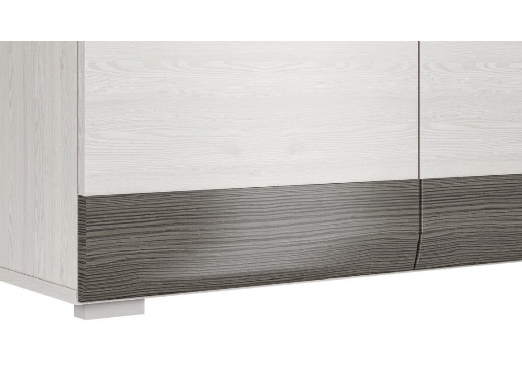 CASA 56008 Šatní skříň dvoudveřová v moderním provedení s rýhovaným dekoračním motivem v šedé barvě. Korpus a dvířka jsou vyrobeny z kvalitní desky LTD hraněné ABS páskou v barvě borovice sněžná, dekorační motivy a úchyty jsou vyrobeny z desky MDF v barvě šedá. Dodáváme v demontovaném stavu.