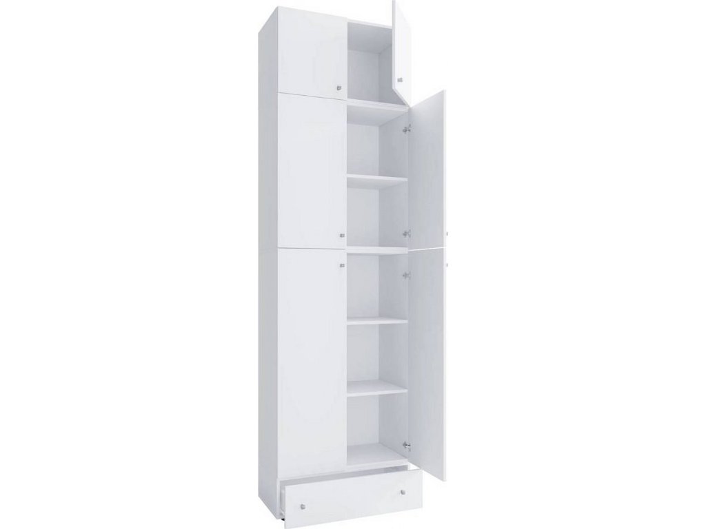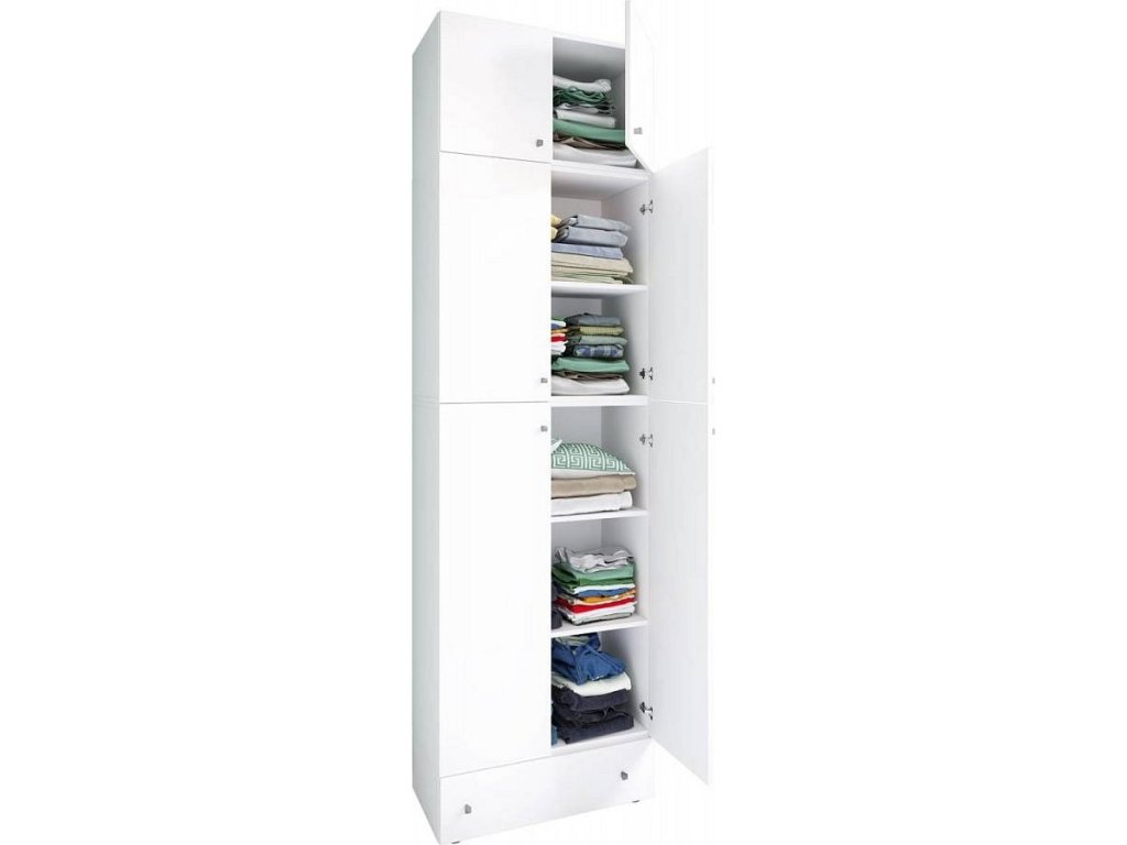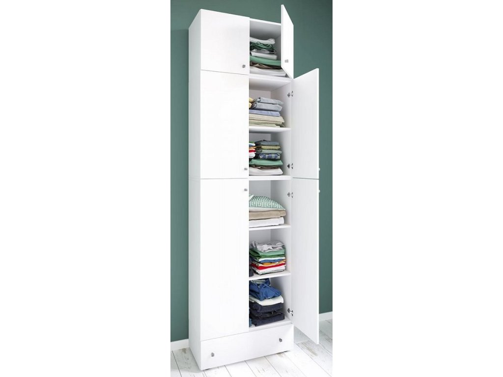 Šatní skříň Lona XXL s otočnými dveřmi s nástavcem a zásuvkou, bílá