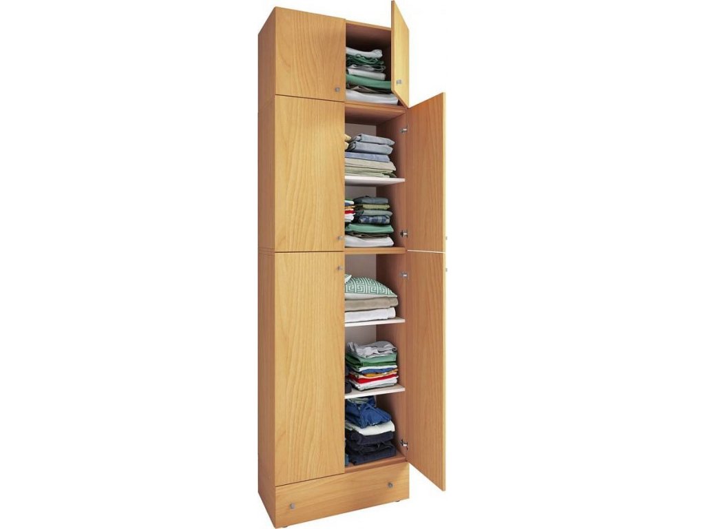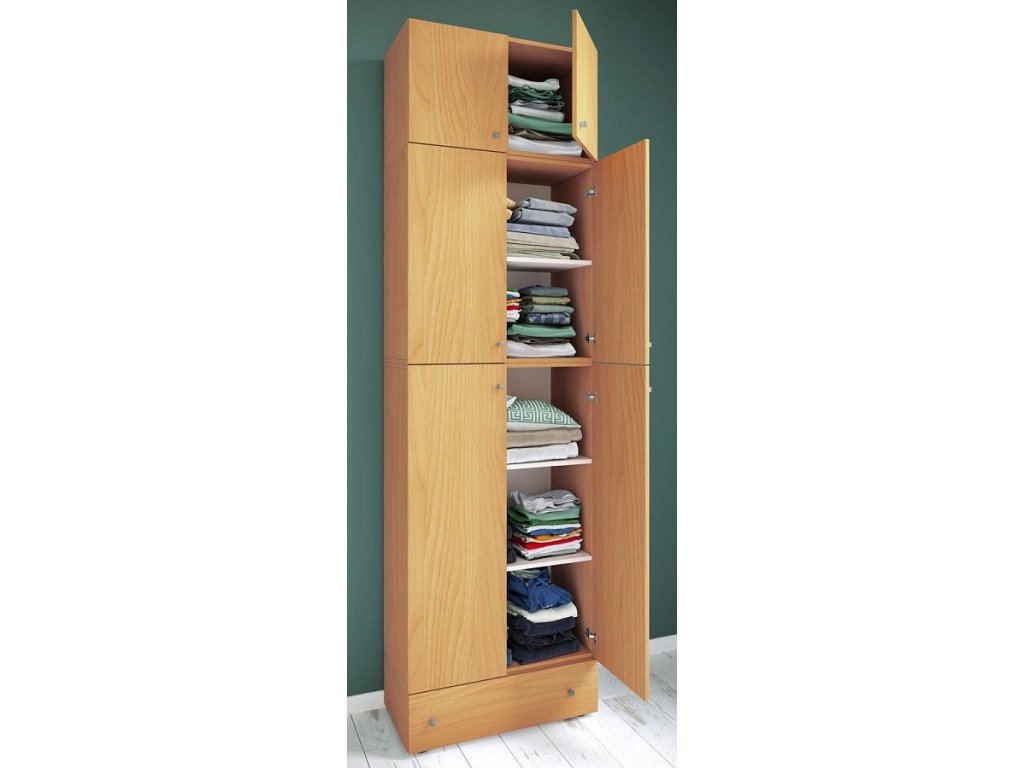 Šatní skříň Lona XXL s otočnými dveřmi s nástavcem a zásuvkou, buk