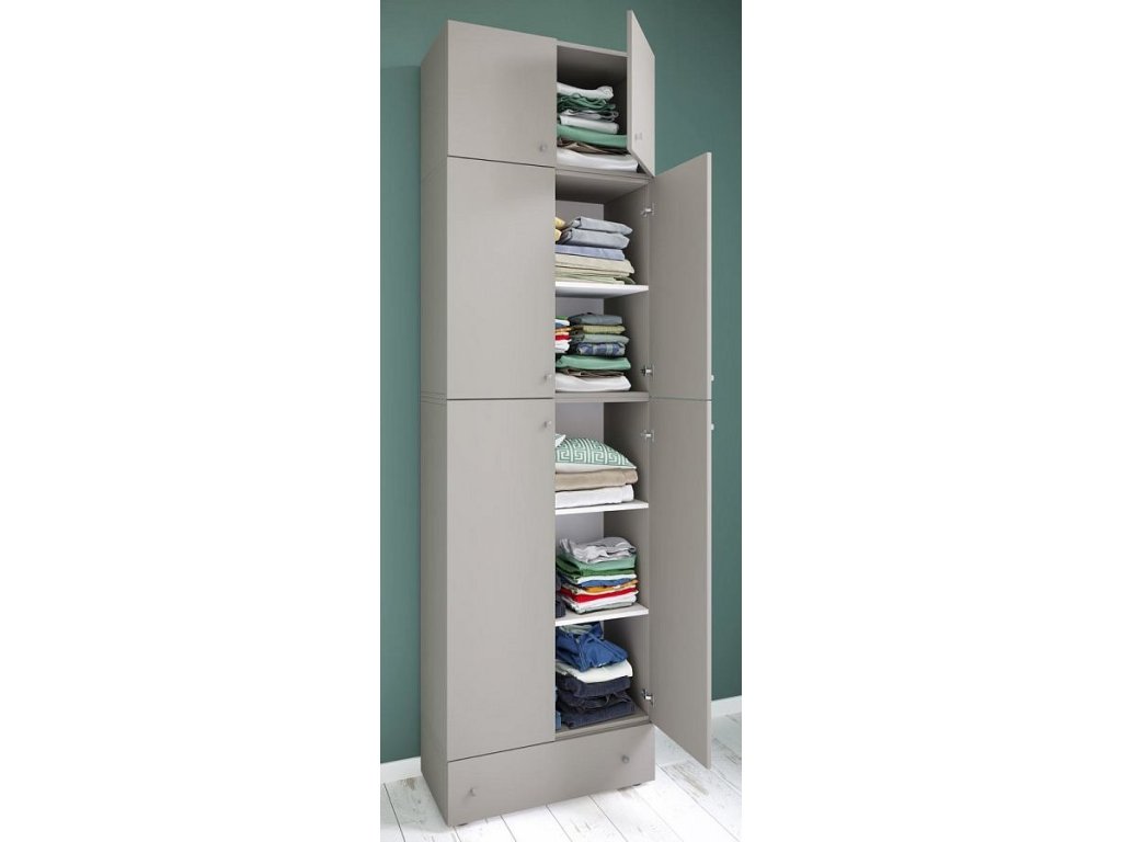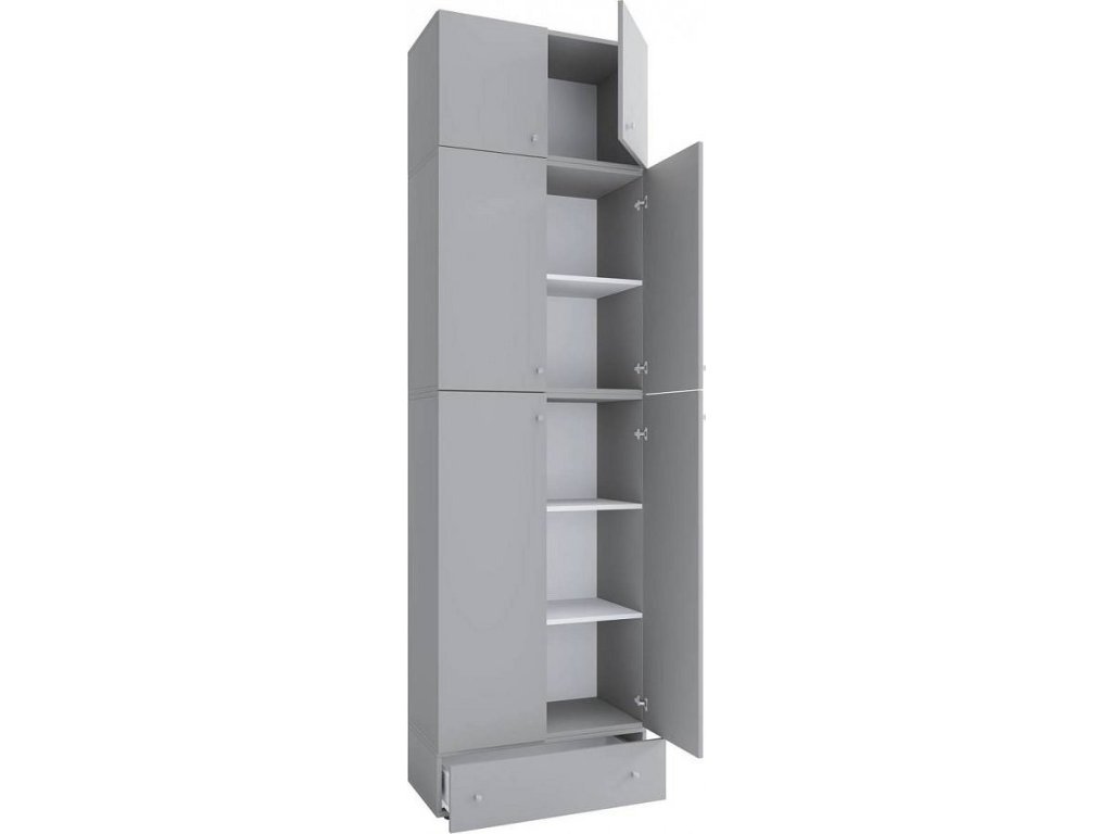 Šatní skříň Lona XXL s otočnými dveřmi s nástavcem a zásuvkou, šedá