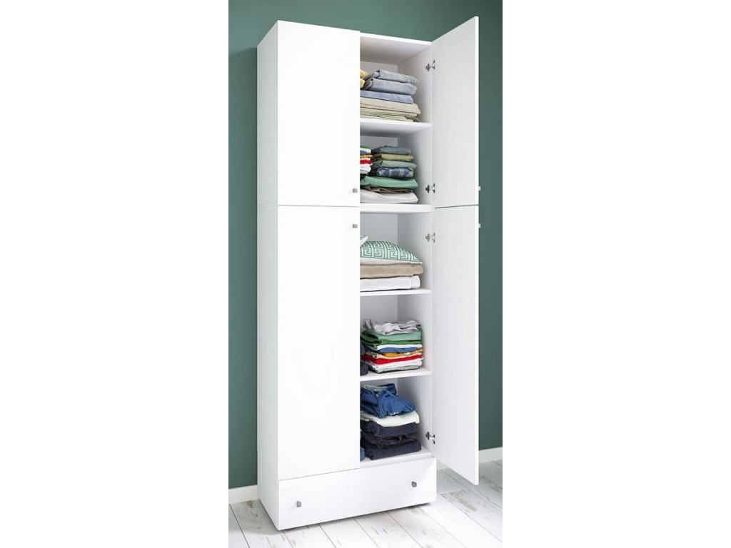 Šatní skříň Lona XXL s otočnými dveřmi se zásuvkou, bílá