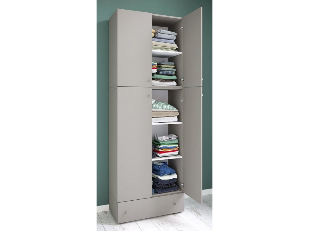 Šatní skříň Lona XXL s otočnými dveřmi se zásuvkou, šedá