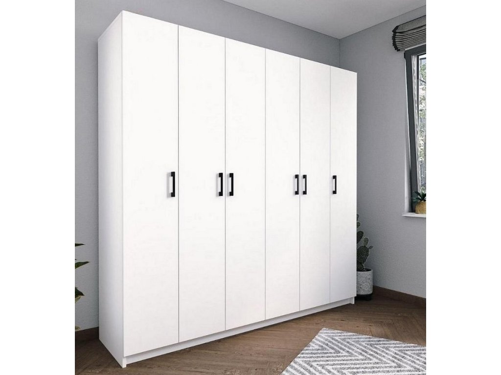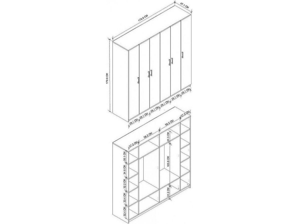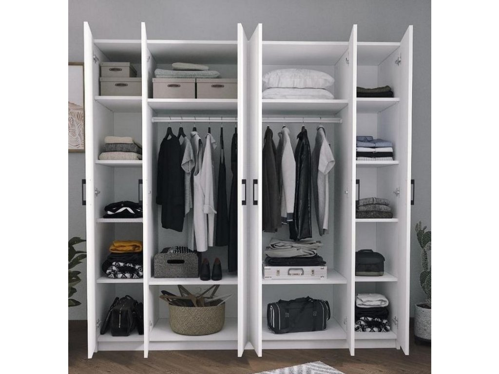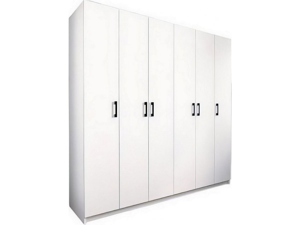 CASA 36067 Šestidveřová šatní skříň je vyrobena z kvalitní desky LTD nenáročné na údržbu, v barevném provedení bílá. Tloušťka materiálu - 18 mm. Na dveřích jsou použity zpomalovací panty, které zabraňují nárazům dveří do korpusu. Dodáváme v demontovaném stavu.