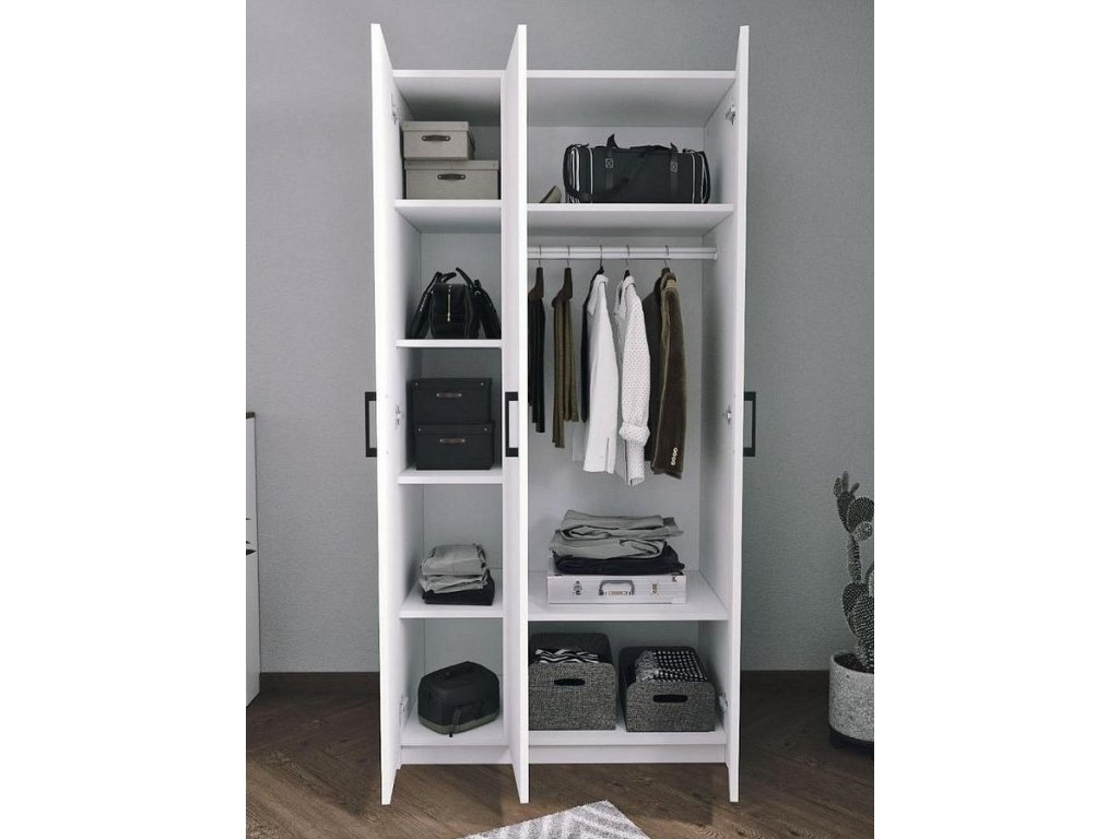 CASA 36065 Třídveřová šatní skříň je vyrobena z kvalitní desky LTD nenáročné na údržbu, v barevném provedení bílá. Tloušťka materiálu - 18 mm. Na dveřích jsou použity zpomalovací panty, které zabraňují nárazům dveří do korpusu. Dodáváme v demontovaném stavu.
