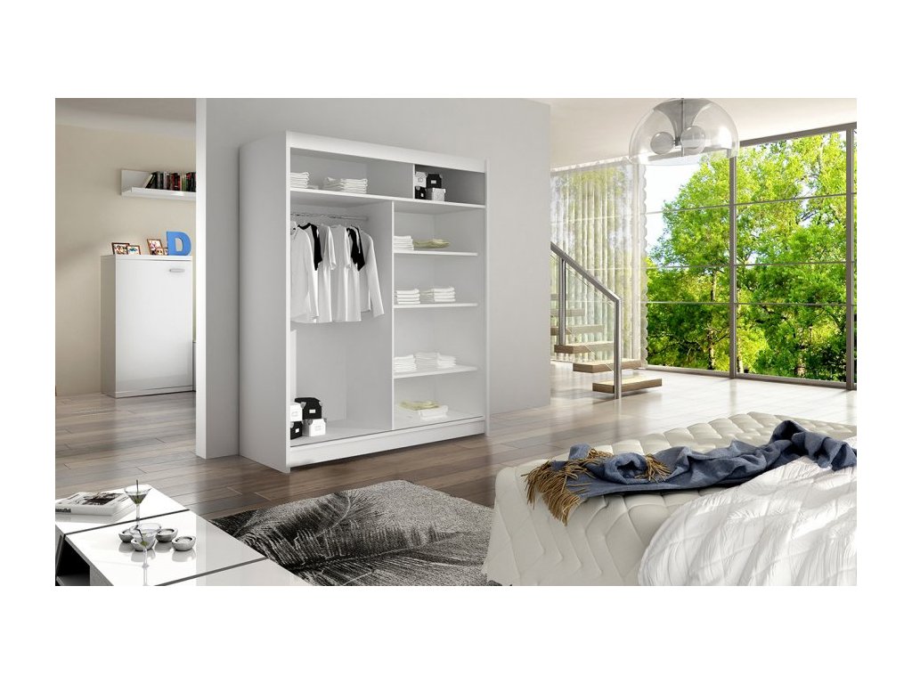Moderní a elegantní design skříně osloví i náročné zákazníky. Eleganci podtrhují dlouhé stříbrné úchyty a moderní nádech dodává kombinace černé s bílými pruhy na dveřích skříně. Je vyrobena z lamina o síle 16 mm a hrany jsou ukončeny ABS lištou. Vodící lišty jsou vyrobeny z odolného hliníku a splňují požadavky pro každodenní užívání. Díky svému uspořádání poskytuje dostatek úložného prostoru. Skvěle se hodí do ložnice, předsíně, dětského, nebo studentského pokoje. Skříň je dodávána v demontu a součástí je montážní plánek včetně všech potřebných spojovacích materiálů. Vyobrazené dekorace nejsou v ceně.