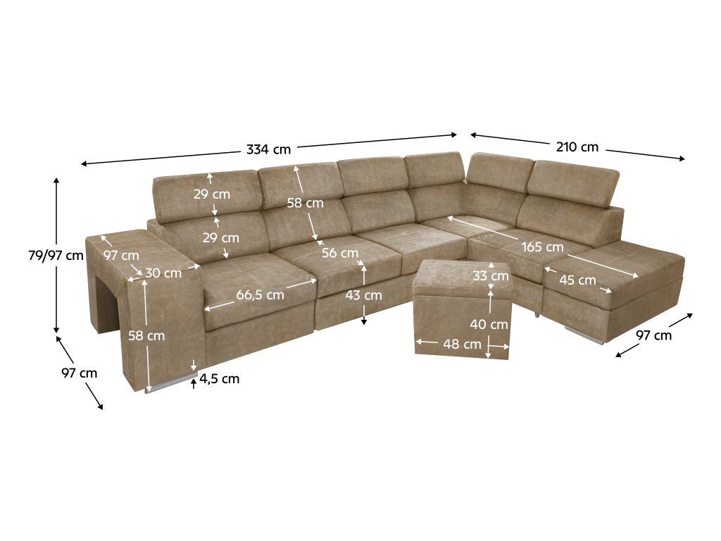 Rozměry (ŠxHxV): 334x210x79/97 cm