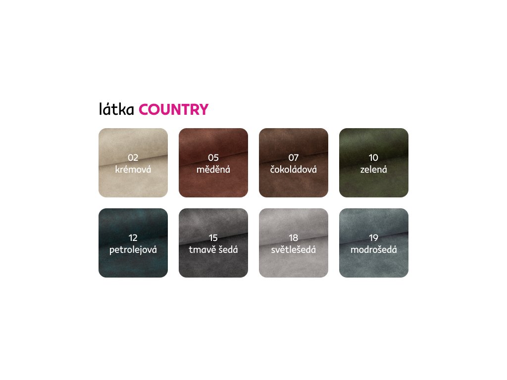 Materiál čalounění: látka Country 8