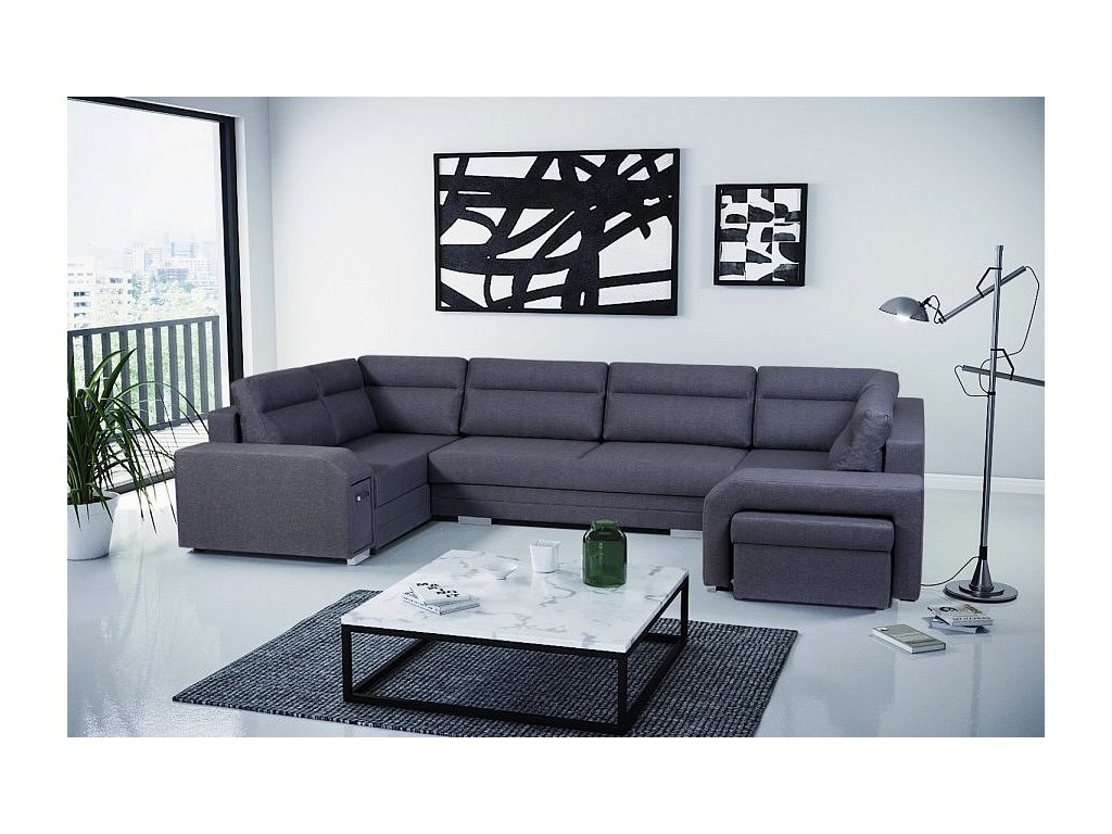 Moderní prostorná sedačka, která svým rozměrem splní všechna vaše očekávání. Na této designové sedačce můžete lenošit u televize nebo pozvat přátele k příjemnému posezení. Sedací souprava je rozkládací, jednoduchým rozkladem pomocí automatu vznikne lůžko vhodné k příležitostnému spaní nejen pro vaši návštěvu. Sedačka má tři praktické úložné prostory plus otevírací taburet, který je zasunut do boční části. Ve druhé boční části je zasunovací bar, kde schováte vše, co potřebujete ke správnému lenošení. Sedačka je vyrobena z pružin v kombinaci s kvalitní PUR pěnou. Potažena je čalounickou látkou Inari v šedém provedení. Sedací souprava má očalouněná také záda, takže ji můžete umístit i do prostoru. Sedací souprava bude dodána v provedení jako na úvodním obrázku, ostatní obrázky jsou ilustrační. Zboží je dodáváno na paletě v demontu.