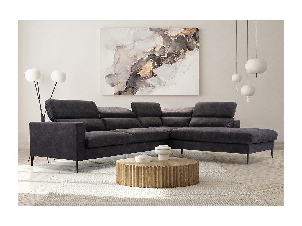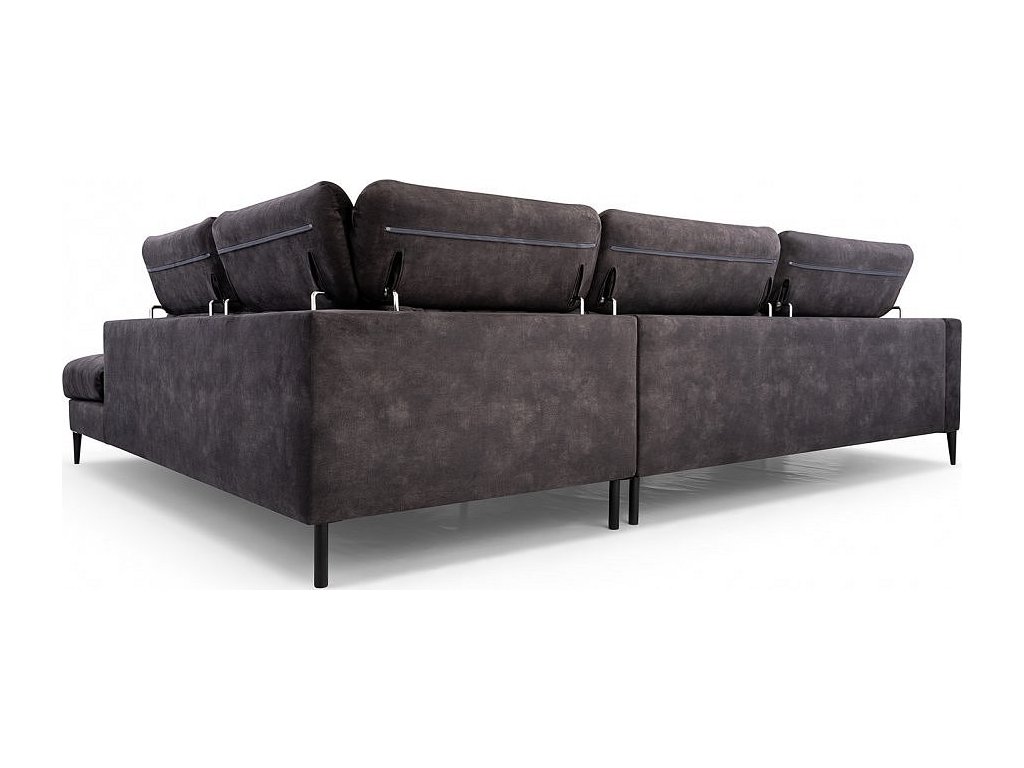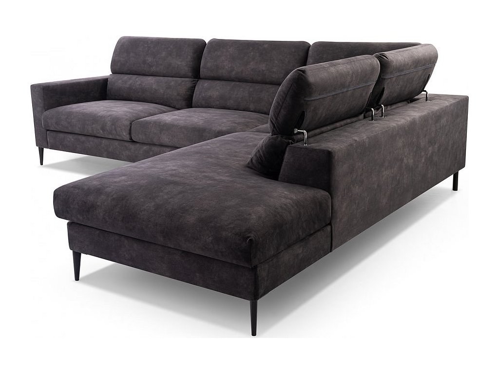 Moderní, prostorná a mimořádně pohodlná rohová pohovka, která svým rozměrem splní všechna vaše očekávání. Na této designové sedačce můžete lenošit u televize nebo pozvat přátele k příjemnému posezení. Velkou předností jsou také polohovatelné opěrky hlavy. Sedačka je vyrobena z vlnitých pružin v kombinaci s kvalitní PUR pěnou. Výhodou této sedací soupravy je možnost univerzálního sestavení, tzn. že podle potřeby můžete mít levou nebo pravou stranu. Potažena je čalounickou látkou Palladium v šedém provedení. Tato látka snižuje absorpci tekutin, usnadňuje údržbu a minimalizuje riziko ušpinění. Sedací souprava má očalouněná také záda, takže ji můžete umístit i do prostoru. Sedací souprava není rozkládací a nemá úložný prostor.