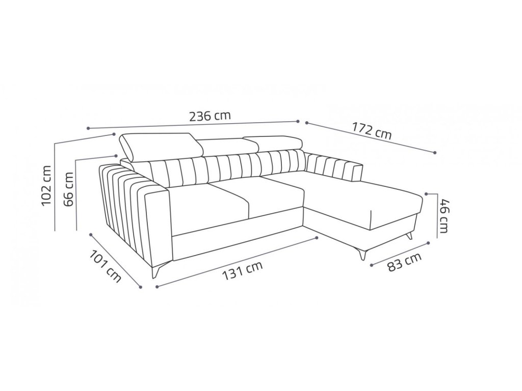 Sedací souprava Mildred osloví každého, kdo preferuje moderní vzhled a zároveň pohodlí a praktičnost. Je potažena kvalitní potahovou látkou. Sedací souprava je velmi pohodlná a dostatečně velká na posezení s přáteli, nebo rodinou. Pro případ, že se návštěva zdrží přes noc, je sedací souprava vybavena rozkladem, díky kterému sedací soupravu jednoduše přeměníte v prostorné lůžko. Sedací souprava má praktický úložný prostor, který můžete využít např., na lůžkoviny. Pohodlí při sezení zajišťuje výplň sedáků, kterou tvoří kombinace pružin faliste s kvalitní PUR pěnou. Komfort a pohodlí při odpočinku zvyšuje polohovací opěrka hlavy. Sedací soupravu nabízíme v levém i pravém provedení.