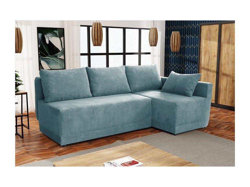 Moderní rohová sedací souprava Vás zaujme svým jednoduchým designem. Součástí jsou polštáře, které dělají sedací soupravu velice pohodlnou. Díky svým rozměrům je vhodná i do menších pokojů. Je praktická, rozklad lze použít k občasnému přespání, plocha lůžka je 198x133 cm. Uvnitř sedací soupravy je úložný prostor, který je možné využít k uložení lůžkovin. Výplň sedáku tvoří pružiny bonell v kombinaci s kvalitní PUR pěnou. Sedací soupravu nabízíme v několika barevných provedeních. Fotografie sedací soupravy v rozkladu jsou pouze ilustrační. Správný barevný odstín je na úvodní fotografii.