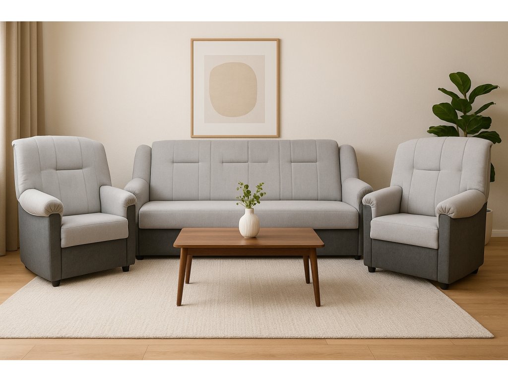 Klasická sedací souprava Panda, je díky svým rozměrům vhodná také do menších pokojů. Sedací souprava je rozkládací a samozřejmostí je i praktický úložný prostor. Jednoduchým rozložením pomocí systému "klik klak", vznikne lůžko vhodné k příležitostnému spaní. Sedací souprava je potažena kvalitní potahovou látkou. Sedací soupravu nabízíme v několika barevných provedeních, takže si určitě vyberete tu pravou pro Váš útulný obývací pokoj.