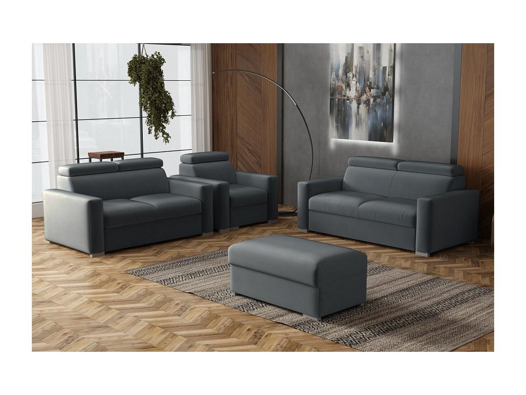 Rozměry trojsedu: 190 x 100 cm dvojsedu: 170 x 100 cm křesla: 105 x 100 cm taburet s úložným prostorem: 100 x 60 cm